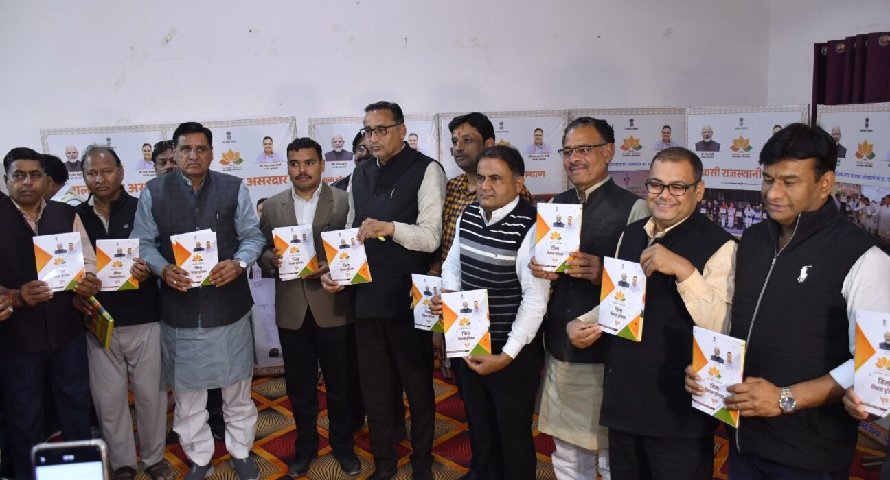 इस दौरान विधायक हरलाल सहारण, जिला कलक्टर अभिषेक सुराणा, भाजपा जिलाध्यक्ष बसंत शर्मा सहित अतिथियों ने जिला प्रशासन तथा सूचना एवं जनसंपर्क विभाग की ओर से दो वर्ष की उपलब्धियों को लेकर प्रकाशित की गई जिला विकास पुस्तिका का विमोचन किया। विधायक सहारण ने जिला विकास पुस्तिका में समाहित सामग्री का अवलोकन किया और कहा कि पुस्तिका में समग्र ढंग से जिले के विकास को शामिल करने का प्रयास किया गया है। उन्होंने कहा कि पुस्तिका आमजन को जिले के विकास एवं योजनाओं को लेकर जागरुक करने की दिशा में उपयोगी साबित होगी। पुस्तिका में जिले में बजट घोषणाओं, फ्लैगशिप योजनाओं के क्रियान्वयन के साथ-साथ विभिन्न विभागों की ओर से किए गए विकास कार्यों एवं अर्जित उपलब्धियों को शामिल किया गया है।
