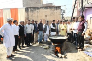 हवन के पश्चात अग्नि प्रज्वलित कर भट्टी पूजन छगनलाल सेवदा, सुखाराम पारीक, बनवारी लाल जांगिड़ एवं ओमप्रकाश पारीक द्वारा किया गया। उद्घाटन समारोह को संबोधित करते हुए जितेन्द्र शर्मा ने कहा कि हर वर्ष की भांति इस वर्ष भी गौ सेवा संकल्प माह का शुभारंभ समाज के जनसहयोग से किया जा रहा है।